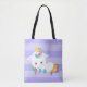 Bolsa Tote Unicórnio Branco Bonito Deitado com Stripes Roxas
