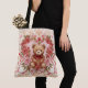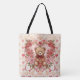 Valentine's ,Teddy Bear,Pink Love Heart and Flowers, Tote bag