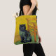 Tote Bag com um gato preto no estilo de Van Gogh! Esta gatinho preta senta-se sobre um chão verde sobre um fundo de decoração da Noite Estrelada. Um presente fabuloso para amantes de gatos e colecionadores de arte holandeses!