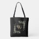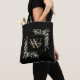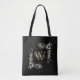 O verde impermeável de aquarelas deixa um saco de tote com nome de monograma floral com um primeiro monograma de ouro sobre fundo preto com o seu nome definido num guião branco na moda. Projetado por Thisnotme©