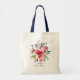 Saco de compras para presentes de boas-vindas DIY com flores em aquarela vermelhas ombre e azul empoeirado. Copyright © 2016-2019 Bombino Designs™. Todos os direitos reservados.