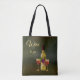 Um saco de tota com uma pintura original clássica de uma garrafa de vinho com óculos em fundo verde escuro com os seus próprios textos personalizados (opcional).