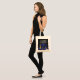 Você conseguiu! Parabéns ao Formando. Pegue aquela pessoa especial que rosa para o topo com duro e estude um parabéns Você Rosa para o Top Tote Bag com nossa divertida design ilustrada de um monte de bonés de formatura voando em frente a um fundo preto texturizado com um boné voando mais alto do que os outros com as palavras em branco no topo, você rosa para o topo. Parabéns na sua realização!