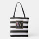 Bolsa Tote W Monograma Floral Dourada | Listras Pretas e Dour
