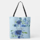 Watercolor Modern Floral Marinho Blue on Light Blue Business Professional Tote Bag com assinatura personalizada de tipografia elegante escrita manuscrita para o nome. Personalize com seu nome e profissão ou nome comercial.