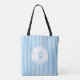 Bolsa Tote Whimsical Blue White Stripe Preppy Mom Established