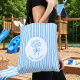 Bolsa Tote Whimsical Blue White Stripe Preppy Monogram