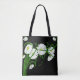 Bolsa Tote White Daisies sobre fundo preto em contraste