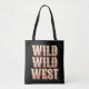 Design de texto "Selvagem Selvagem Oeste" com letras riscadas em cores amarela, vermelha e bege