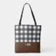 Esta moderna bolsa de xadrez de búfalos preto e branco é a maneira perfeita de carregar de todos os seus itens em estilo. Este design apresenta um design de branco e preto e uma cor castanha de chocolate preta na parte inferior do saco. O monograma é clássico. Você pode alterar o estilo de fonte do monograma, removê-lo completamente ou alterá-lo para o seu solteiro inicial ou para o seu nome.