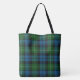 Colorida bolsa tote xadrez feita no tradicional padrão de tartã Lamont da família, em azul, verde, branco e preto. Uma única letra maiúscula branca monogramada na frente da bolsa está pronta para personalização. Ótima bolsa tote para todos os fins.
