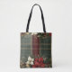 Bolsa Tote Xadrez Verde Elegante e Natal de Poinsettia Vermel