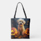 Bolsa Tote Yorkipoo do Halloween Com Pumpkins Assustado