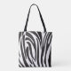 Zebra Black e White Stripes, design de Trendy Bag Tote. O padrão listrado de Zebra negra e branca. Verão, zebra, padrão zebra, faixas zebra, preto e branco, decor listrado, padrão, mulher tenda, impressão de padrão, pele de zebra, selva, tropical, fundo Safari, padrão Zebra Animal