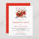 Um valor para o alternativo do ORÇAMENTO em tamanho menor de 4,5 x 5,6" de semirbrilho de 110 lbs, que é de espessura semelhante a um cartão postal (no entanto, não é adequado para uso como cartão postal). POR FAVOR, OBSERVE QUE HÁ UM convite por folha. Red Cream Florals Festa de noivado Convite. Um buquê de aquarelas florais e folhagem está no topo e a tipografia do na moda está abaixo, que é facilmente personalizada. Um plano de fundo vermelho de coordenação está no verso, que pode ser alterado para outra cor se preferido através da opção personalizar mais.