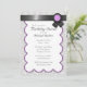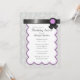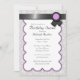Belos convites de festas com cinza de urze e cor damasco branca e design de fita preta com roxo no topo.