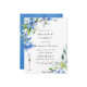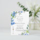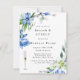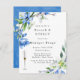 Design apresenta um elemento floral impresso em tons de azul e branco sobre folhas de folhagem coroa coroa coroa e gotas de neve e Scilla sobre fundo azul claro de aquarela. Excelente para as comemorações do casamento!