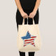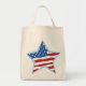 Uma bandeira americana e uma estrela cômica se combinam para fazer este gráfico patriótico bonito. Estas sacolas de algodão são excelente de livros, comprando ou um dia na praia.