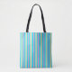 Um padrão xadrez colorido em aqua, azul, rosa e dourado. Esta é uma bolsa tote de qualidade com uma alça preta.