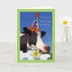 Cartão de cumprimentos de um artigo de aniversário bonito e engraçado para uma avó, avó. Uma vaca vestindo um chapéu de festa e comendo um narciso está no cobrir. Arte, imagem e direitos de autor versos © Shoaff Ballanger Studios, 2022.