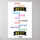 Não subestime o poder das Palavras. Eles têm poder para mudar o mundo. Este é "Bom, melhor, melhor" - poster inspiracional que você pode colocar no seu quarto, área de exercícios, entrada ou qualquer lugar. Isto vai lembrá-lo todos os dias que você tem que trabalhar duro e inteligente até que seu bem seja melhor e seu melhor seja melhor. Não espere comprar hoje e te preencha em casa com vibração positiva.