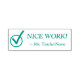 Este design de carimbo positivo apresenta a mensagem motivadora de feedback "NICE WORK!" e um nome de tutor personalizado. Também apresenta uma marca de verificação decorativa. Pode ser usado por um professor ou educador ao marcar missões, para reconhecer que o aluno fez um trabalho de excelente.