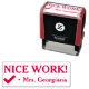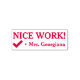 Este design de carimbo motivador apresenta a mensagem "NICE WORK!" e um nome de professor personalizado. Também apresenta uma marca de verificação decorativa. Pode ser usado por um professor ou educador ao formando o trabalho estudantil, para reconhecer que um aluno fez um trabalho excepcional.