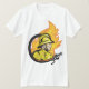Esta design mostra uma das profissões mais reconhecíveis, um bombeiro. Este bombeiro está colocado contra o fundo de algumas chamas e está segurando uma mangueira de fogo pronta para apagar as chamas. Este bombeiro com uma mangueira de design parece excelente nesta camiseta masculina. Perfeito para si mesmo ou como presente