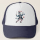 Celebrate style and a playful spirit with this hat featuring a dancing skeleton dressed in red, white, and blue attire. With a jaunty grin and a cane held high, this lively design captures the perfect mix of fun and patriotic flair. Ideal for festivals, parties, or anyone who loves quirky statement accessories, this hat adds a touch of humor and personality to any outfit. A great gift for those who march to the beat of their own drum.
