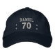 70 Birthday Custom Name MARINHO BLUE Hat SILVER Embroidery com aniversário STARS Fun que você pode personalizar com um sentimento, nome e ano. Todo o texto é totalmente personalizável, pelo que também é adequado para um aniversário de 71 72 73 74 75 76 77 78 e 79 anos, ou qualquer outro ano de que necessite. Você também pode mudar a cor do chapéu, o estilo do chapéu ou a cor do thread para uma aparência diferente.