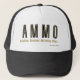 Este é um caminhoneiro que mostra as palavras "AMMO" em uma fonte fina de impressão com letras douradas fazer esboço preto na sigla A.M.M.O que significa (Movimento Ambicioso Motivando Outros) neste estilo e tema da sigla AMMO Roupa USA. Esses chapéus são confortáveis, ajustáveis casualmente de 17 a 24 pol com uma espuma de nylon 100% frente e excelente traseiro de nylon para uso diário ou em qualquer ocasião especial.