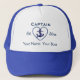 Azuis marinhos e branco, boné temático náutico. Aperfeiçoe para amantes do barco! Navegue junto com este boné à moda. Adicione seu próprio ano, seu nome, e igualmente nome do seu barco (se você desejo). Criar-se um boné original.