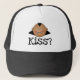 Um Drácula Afro-Americano e texto que diz "Beijo?" em T-shirts de Halloween, sacos de tote, canecas, ímãs e outros equipamentos temáticos do Drácula!