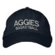 Quer um chapéu de Aggies confortável? Este é para você. Do Roupa Alternativo, este boné de chino tem um pano pré-curvo, uma correia de pano e um fecho de correia de latão antigo com ranhura de enfiamento, por isso ajustado bem em qualquer um. Subordenação do marinho em todas as cores, exceto branco, preto e rosa. Facilmente personalizado: cores e letras. Mude o basquete para qualquer outro esporte que você siga. Para mais chapéus como este, visite: www.zazzle.com/pacificstuff*