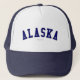 Verifique para fora este chapéu de Alaska! É você de Alaska? Você tem um amigo ou um membro da família que amem Alaska? Em caso afirmativo, este chapéu da "bandeira" é exatamente o presente que você está procurando! As características de design "Alaska" na rotulação arqueada do marinho na pia batismal clássica da faculdade.