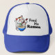 Alimente-me, Raio! Prepare-se para receber macarrão quando você vestir este chapéu de caminhoneiro divertido, apresentando um gato japonês sortudo se banhando em uma tigela de chashu ramen!