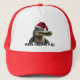 Este jacaré verde estiva um chapéu de Papai Noel e deseja um feriado feliz.