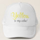 Você vai adorar este chapéu de na moda com o design bonitinho dizendo sua cor favorita. O texto da citação é "Amarelo é minha cor!" em uma mistura divertida e fofa de tipografia entre amarelo e preto.