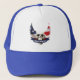 Caveira patriótica com asas na cor da bandeira americana com texto AMERICAN TO THE BONE.