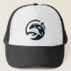 Chapéu elegante com uma ilustração moderna e minimalista de uma orca com uma mão humana mostrando amor de orca.