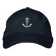 Pode ser acrescentada uma âncora branca sobre um chapéu de algodão e um texto de marinho. Qual é a sua posição, nome, barco?