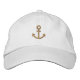 Uma âncora de latão num boné de algodão branco. Adicione texto se quiser.