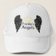 Asas de anjo preto e caminhoneiro halo que inclui a palavra "Angel" em texto preto e personalizado.