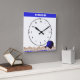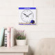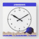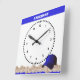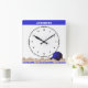 O relógio do templo do esporte impresso com uma borda de basebol e boné de basebol em sotaques azuis. Sala para nome personalizado. Excelente para o quarto de uma criança ou adolescente ou a caverna de homem. Disponível em várias outras cores.