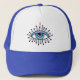 Um Olho Místico de Todos os Olhos em tons de Azul de Lavanda Rosa-Teal num Chapéu Real Azul e Branco do Caminhoneiro. As pestanas rebentam do olho como raios de luz!