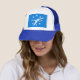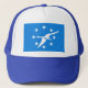Chapéu com a bandeira de Corpus Christi, Texas. Um azul com uma pomba branca e oito estrelas brancas,