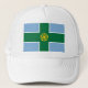 Chapéu com design com uma bandeira do condado histórico de Derbyshire, na Inglaterra, Excelente-Bretanha; bandeira azul com uma cruz verde e um rosa de Tudor de ouro no centro