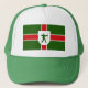 Chapéu com design com uma bandeira do condado histórico de Nottinghamshire, na Inglaterra, Excelente-Bretanha; bandeira verde com cruz vermelha, com ilustração de Robin Hood no centro