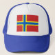 Chapéu com design com uma bandeira do condado histórico de Orkney, na Escócia, Reino Unido Excelente; bandeira vermelha com cruz nórdica azul e amarela