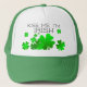 Beije-me, eu sou irlandês é um chapéu de camionista verde e branco, decorado com brilhantes e verdes shamrocks irlandeses.